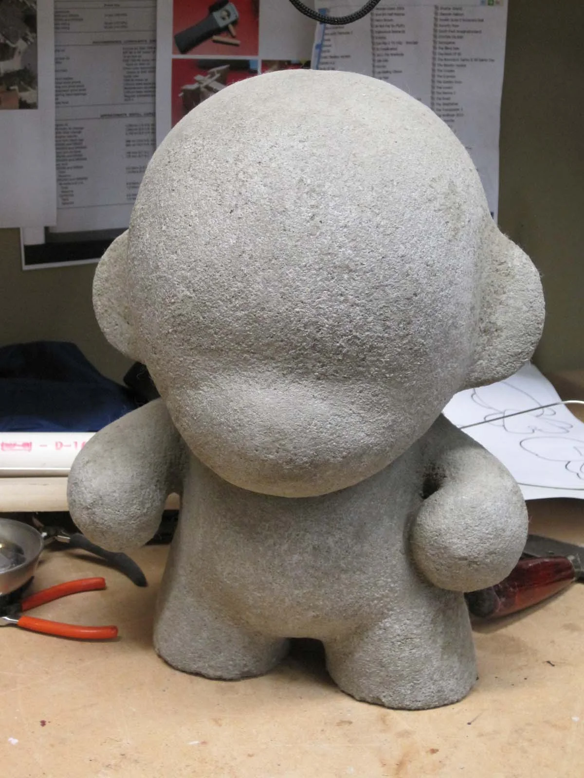 Years ago, when my daughters were much younger they collected Kidrobot vinyl figures. Since I couldn't be there to greet them as they returned home from school, I made this little guy to act as my “stand-in”. I went to Home Depot, picked up a sheet of metal lath, a bag of stucco and started shaping. A few hours later we had a 50 lb doorstop!