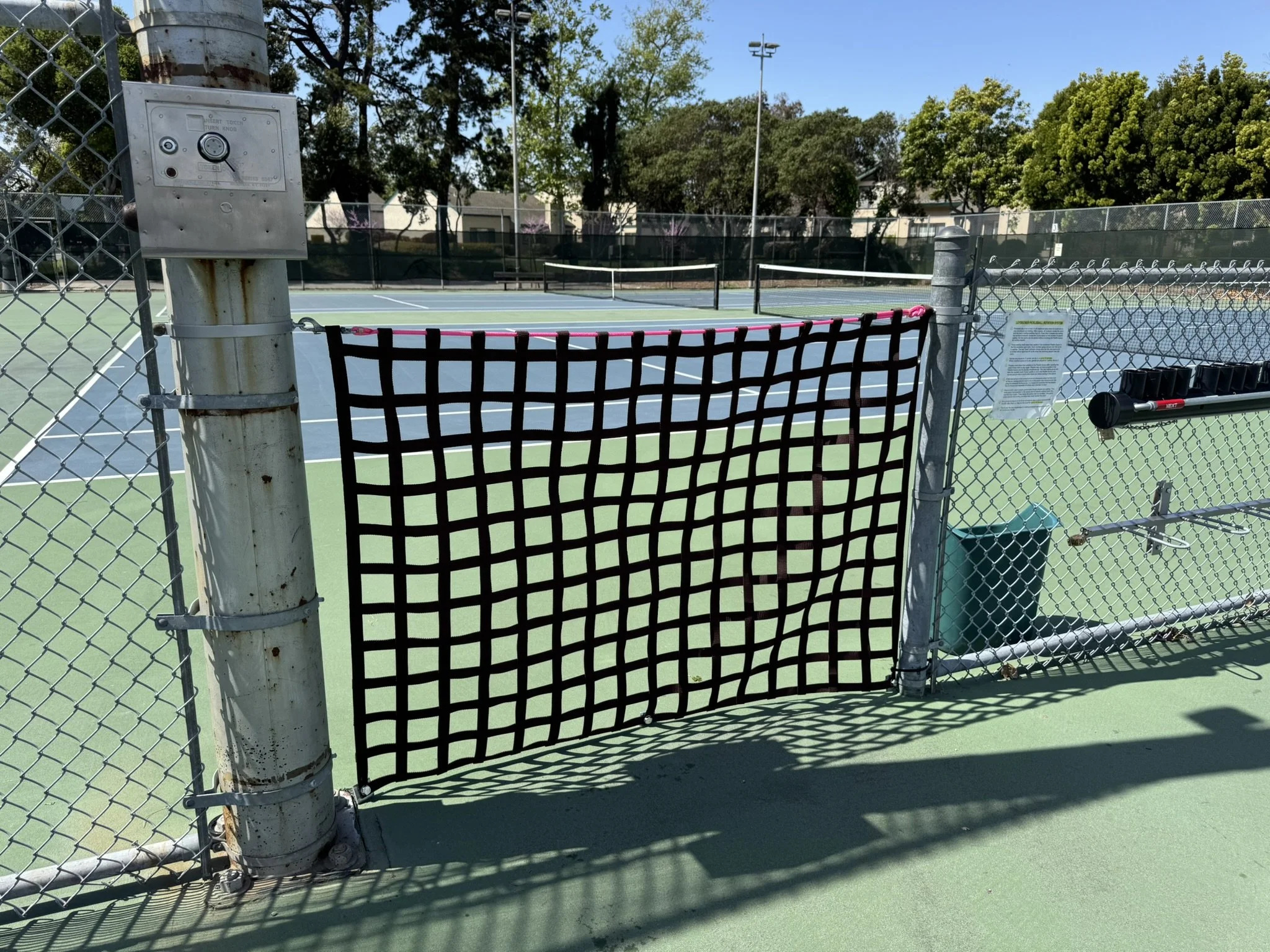 If you’re familiar with the turf war between tennis and pickleball, you’ll understand why this next project was necessary. To keep the peace with our neighbors on the adjacent tennis courts we decided that it was time to install a screen to deflect errant balls back onto our side. The size of the opening was so specific that I decided to weave my own screen using a roll of nylon webbing.