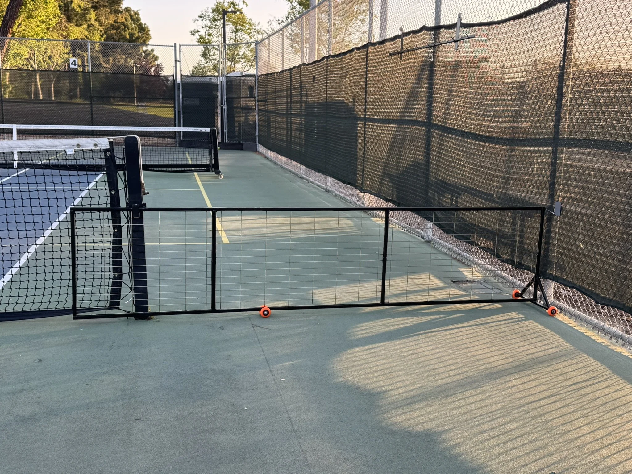 The time had come to finally replace the plastic playpen separating the two courts. The gap was nearly 10 feet wide, so I needed something non-permanent that was light enough to roll and cheap enough to build. I found a steel replacement on Craigslist that I disassembled to repurpose the individual panels.